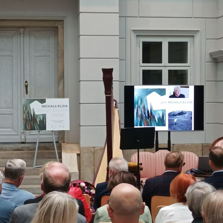 80. urodziny prof. Michała Klisia, niezwykle aktywnego artysty są okazją do przypomnienia tej nietuzinkowej postaci, inteligentnego malarza sztalugowego, wrażliwego akwarelisty, efektownego rysownika, wytrawnego grafika (drzeworytnika), fotografika-dokumentalisty, a przede wszystkim pierwszorzędnego plakacisty oraz wieloletniego nauczyciela akademickiego i pierwszego rektora usamodzielnionej Akademii Sztuk Pięknych w Katowicach. Profesor przygotował na tę okazję cykl nowych prac zatytułowany Między bielami.