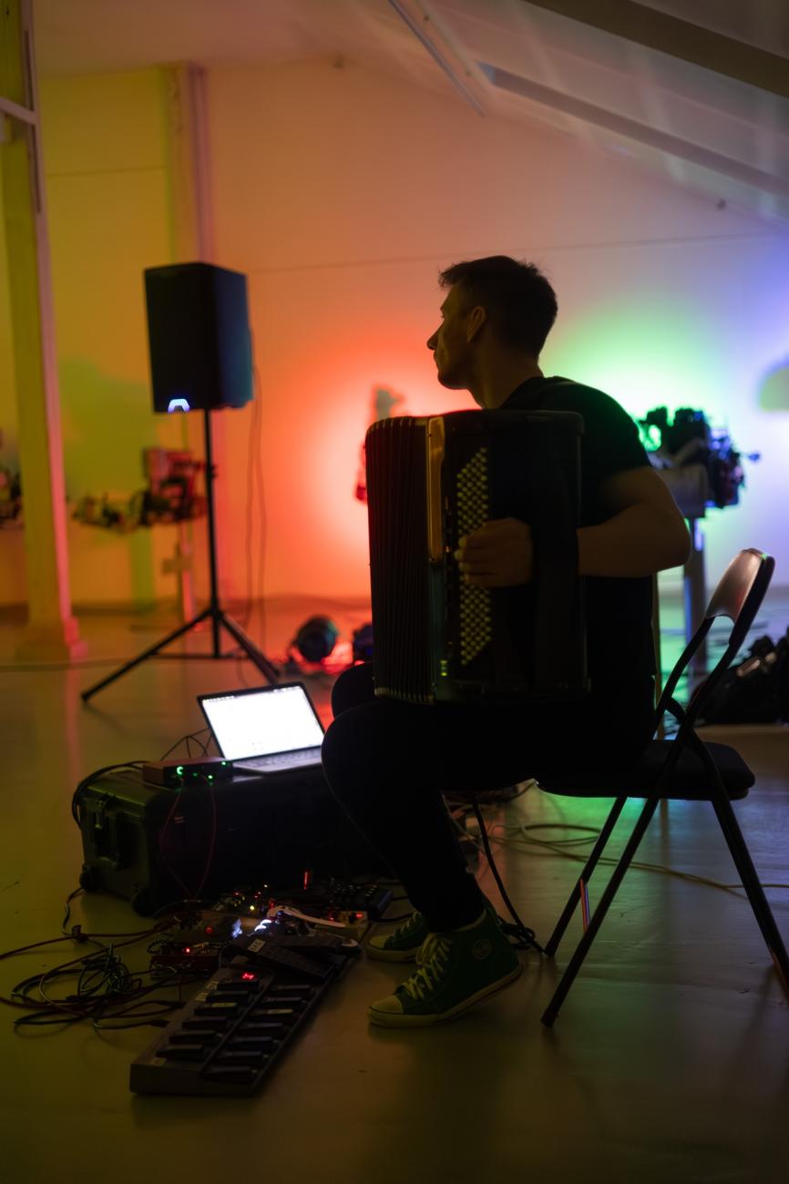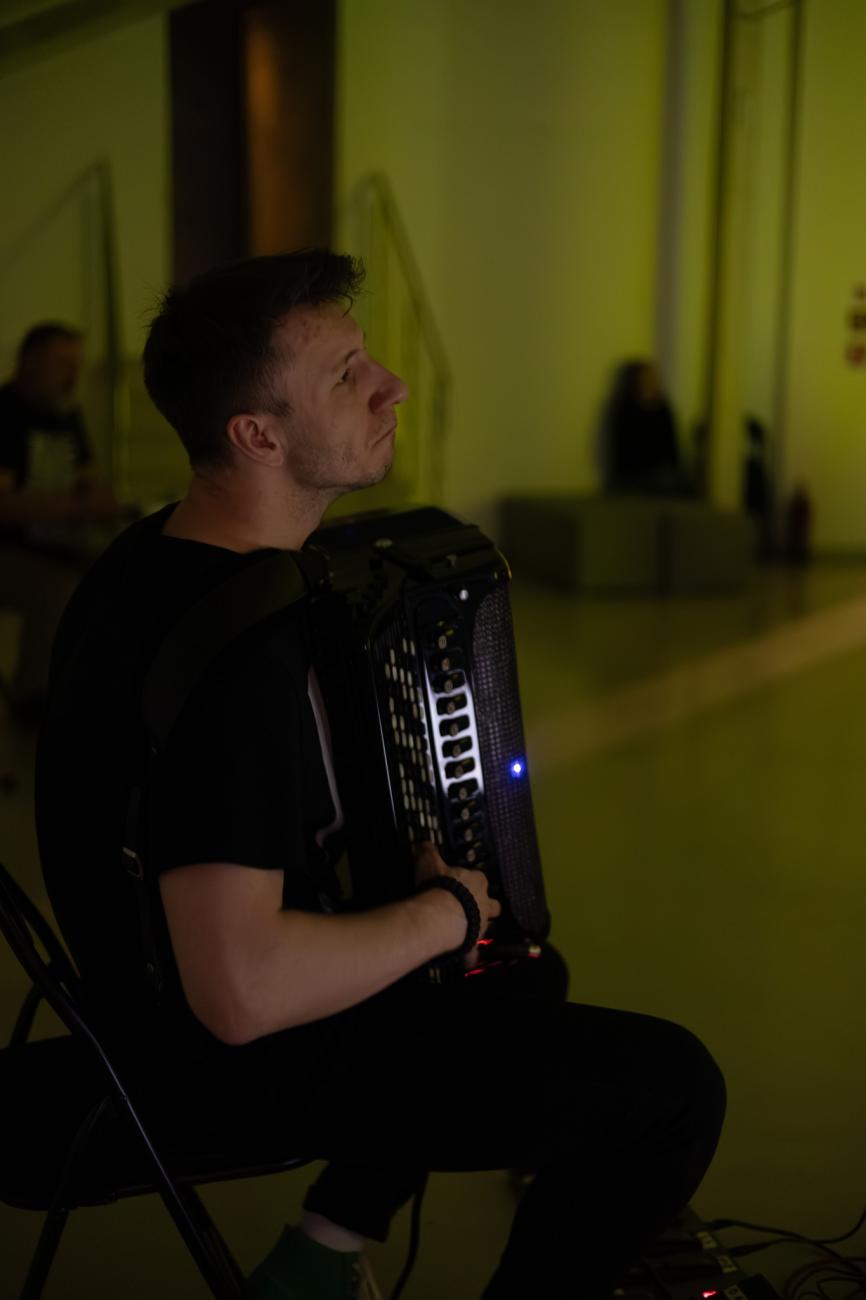 Zbigniew Chojnacki - akordeonista, elektronik, improwizator i kompozytor. Twórca konceptu akordeonu modularnego. Każde jego spotkanie z publicznością, przestrzenią i instrumentem jest zupełnie inne niż̇ wszystkie poprzednie i wszystkie kolejne. Z akordeonem i mnóstwem żywej elektroniki jest gotowy na muzyczne ryzyko bez koła ratunkowego. Jego improwizacje oscylują̨ między ambientem, hałasem, dronem, jazzem, elektroniką, synthpopem i szeroko pojętą̨ kameralistyką. Chwilami zrelaksowany, chwilami w pośpiechu, ale zawsze